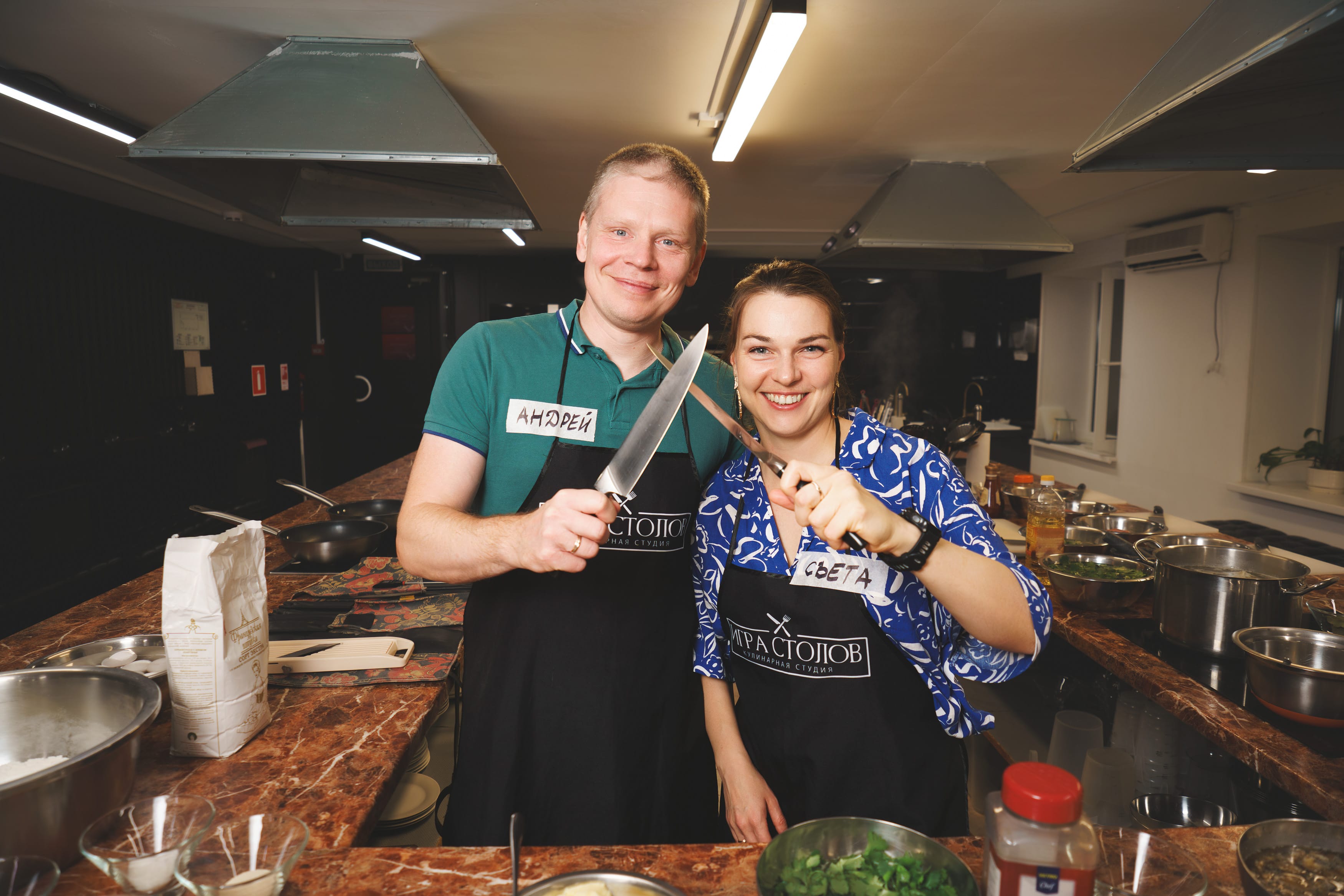 На снимке – уютная кухня, наполненная жизнью и теплом. В центре внимания – большая деревянная столешница, уставленная разнообразной посудой, что создает ощущение постоянной готовки. Рядом с ней – человек в фартуке, сосредоточенно занимающийся приготовлением пищи. Эта фотография передает атмосферу домашнего очага и уюта.n